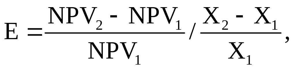 Эластичность NPV по варьируемой переменной (Е) определяется как отношение относительного приращения в NPV к относительному приращению в варьируемом параметре.