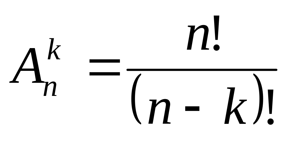 Так как число k–размещений с одним и тем же составом элементов равно k!, т.е. совпадает с числом перестановок из k элементов, то для общего числа k–сочетаний будет справедливо (связывающее с числом k–размещений без повторений) выражение