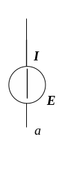 В качестве источников питания в электрических цепях применяются различные устройства. Энергия, потребляемая от источников питания, появляется за счет работы сторонних сил, например, химических, механических, электромагнитных. Природа этих сил для электрической цепи не важна. Источник ЭДС представляет собой такой идеализированный источник питания, напряжение на зажимах которого постоянно (не зависит от тока I) и равно ЭДС E, а внутреннее сопротивление равно нулю. Его обозначение на схемах приведено на рис. 3.1а, а вольт-амперная характеристика на рис. 3.1б.