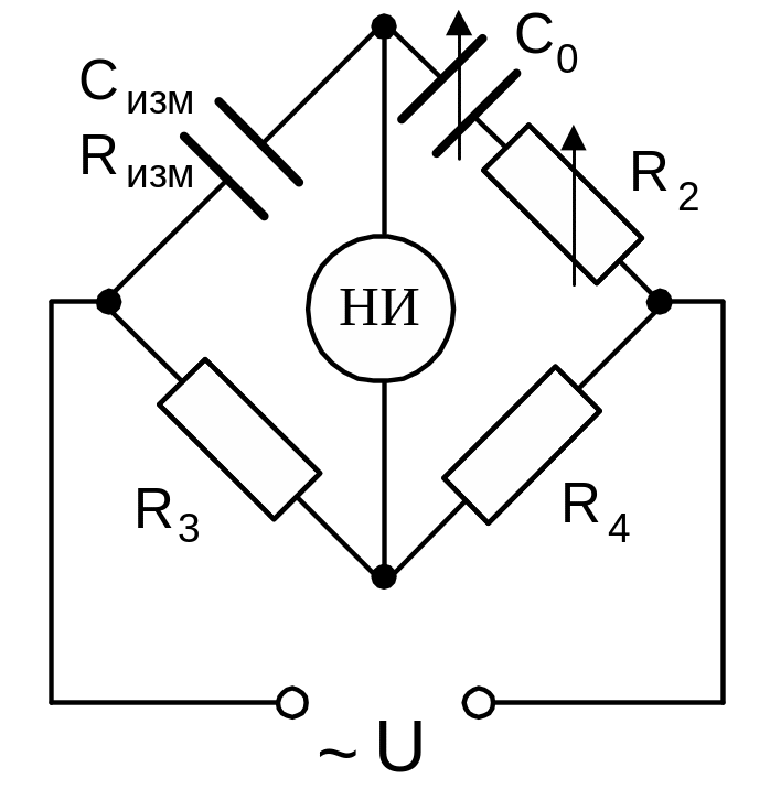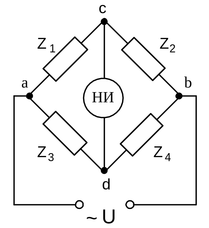 - •Измерительные мосты – электрические схемы, составленные из сопротивлений (плеч моста), источника питания и измерительного прибора.