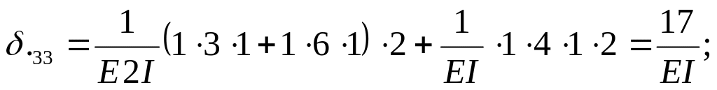 Вычислим коэффициенты уравнений, используя, как обычно, способ Верещагина: