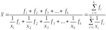Если значения признака х сгруппированы и представлены в виде интервального ряда распределения, то гармоническое среднее значение признака х вычисляется как гармоническое среднее значение соответствующего дискретного ряда.
