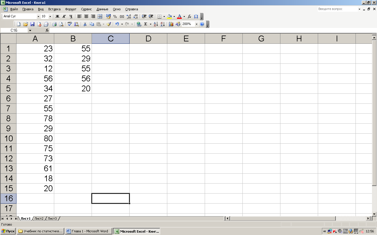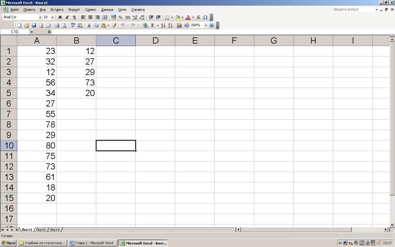 Случайную выборку можно сформировать, применяя Exсel. На-пример, для получения случайной выборки объема 20 ед. из генеральной совокупности объема 200 ед. надо:
