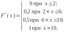 Из формул (1.10.2) следует, что функция (1.10.3) определяет эмпирическое распределение с вариантами , , и соответствующими относительными частотами 0,2 (0,20), 0,3 (0,50,2), 0,5 (10,5).