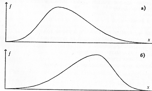 На рис. 1.10.6 а и б изображены кривые соответственно с правосторонней и левосторонней асимметрией.