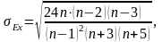 Средняя квадратическая ошибка эксцесса рассчитывается по формуле: