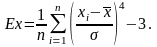 Для симметричных эмпирических распределений рассчитывается показатель эксцесса Еx по формуле: