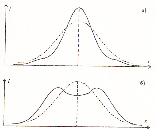На рис. 1.10.7 а) и б) изображены кривые островершинного и плосковершинного распределений.