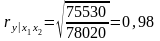 Множественный коэффициент корреляции (1.11.42)