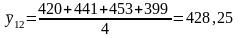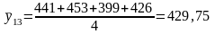 Так как в году 4 квартала, то полагая в формулах (1.12.16) m =4, вычислим 13 значений скользящего среднего: