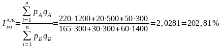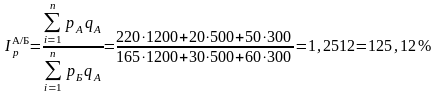 Таким образом, в результате разницы цен товарооборот в регионе А больше, чем в регионе Б на 25,12% (125,12–100), т.е. в среднем цены в регионе А выше.