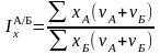Рассмотрим случай, когда значения величины х, измеренной у единиц статистической совокупности, нельзя суммировать. По аналогии с динамическими индексами можно было бы, взвешивая величину х с помощью весовой величины v и выбирая регион Б в качестве базы сравнения, вычислить индекс величины х, сравнивающий значения величины xv в регионе А с регионом Б по формуле