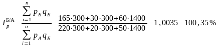 Таким образом, в результате разницы цен товарооборот в регионе Б больше, чем в регионе А на 0,35% (100,35–100), т.е. в среднем цены в регионе Б выше.