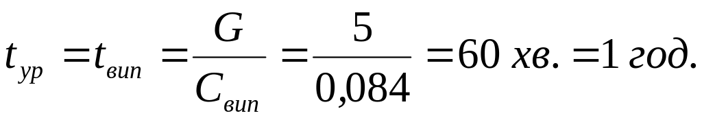 Визначаємо час уражаючої дії СДОР tур за формулою (3).