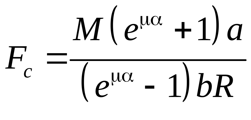 9. Рассчитать силу замыкания ленточных тормозов Fc (кН), в зависимости от момента трения тормоза M (Нм) и угла охвата барабана тормозной лентой .