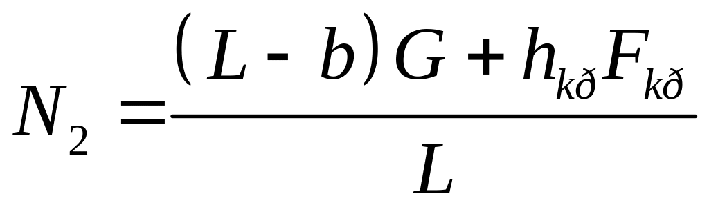 2. Рассчитать нормальные нагрузки на передний N1 (кН) и задний N2 (кН) мосты колесного трактора в зависимости от крюкового усилия Fkр (кН) и базы трактора L (м).