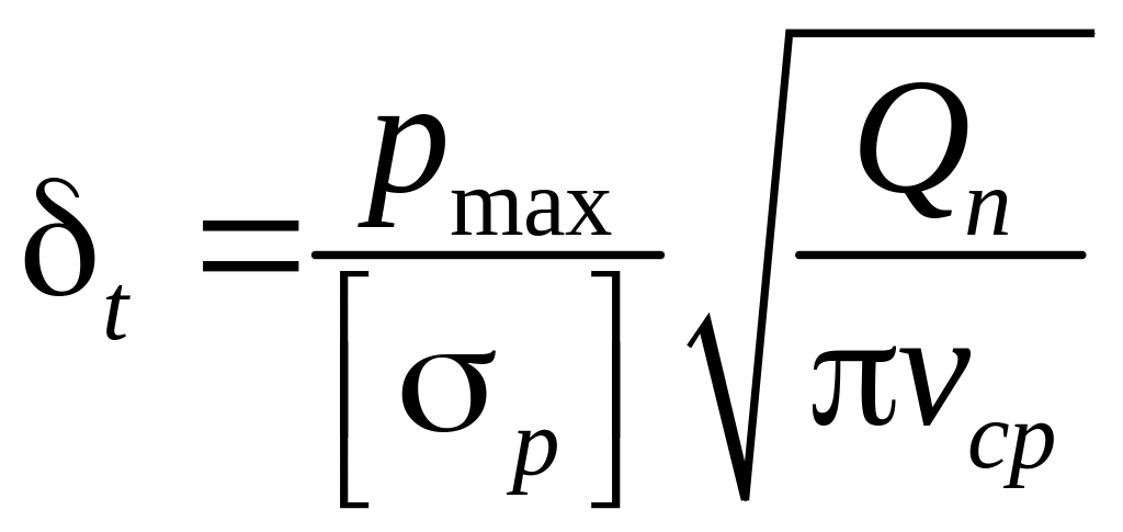 где Qn – подачи насоса, л/мин; [p] – допускаемое напряжение на разрыв, для стальных бесшовных труб [p]=50…60 МПа, для латунных труб [p]=25 МПа.