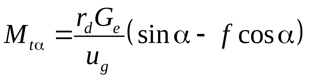 где rd – динамический радиус колеса, м; ug – передаточное число от тормоза к ведущему колесу; f – коэффициент сопротивления перекатыванию трактора.