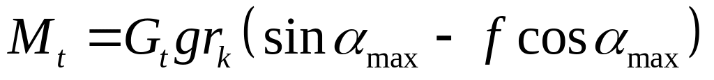 6. Рассчитать тормозной момент на колесах трактора, необходимый для удержания машины на склоне Mt (кН), в зависимости от массы трактора Gt (т) и угла уклона, на котором должен стоять трактор max.