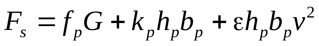 где fp – коэффициент трения рабочих органов плуга о почву; G – вес, Н; kp – удельное сопротивление на единицу площади поперечного сечения пласта, МПа; bp – ширина захвата, м; ‑ коэффициент увеличения тягового сопротивления при увеличении скорости, Нc2/м4.