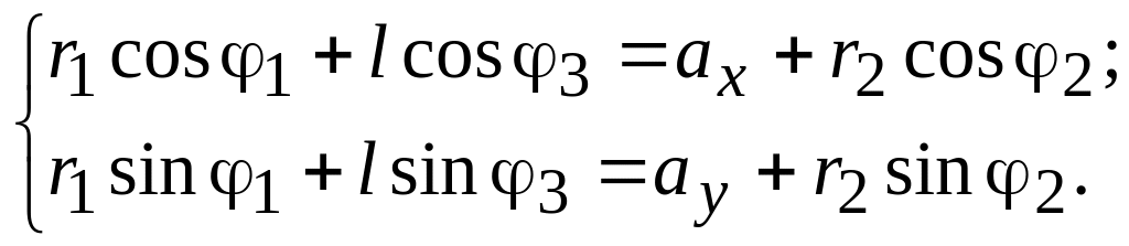 позволяет определить функцию положения шарнирного четырехзвенника, а, следовательно, и цепной передачи. Указанная система является нелинейной и, кроме того, содержит целочисленную переменную . Поэтому ее решение может быть выполнено только численными методами.