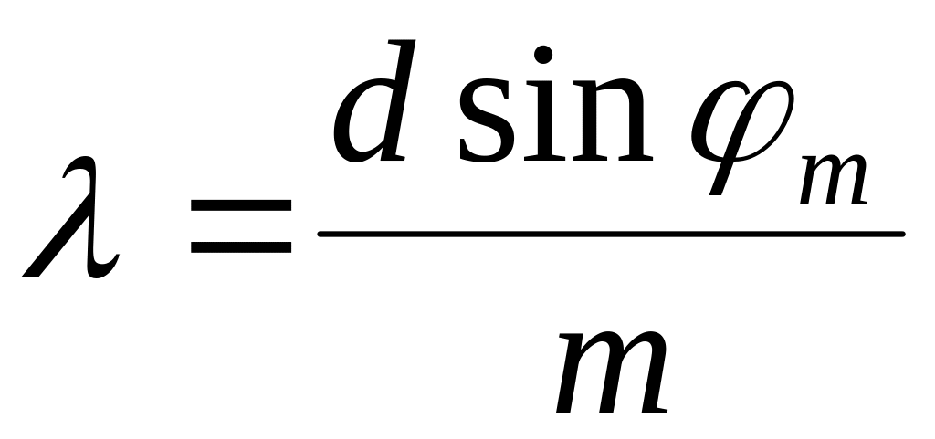 где m = 0, 1, 2, …. – порядок главных максимумов и φm – соответствующий им угол дифракции (знаки ± указывают, что максимумы расположены симметрично относительно центрального максимума, для которого m = 0, и φ = 0).