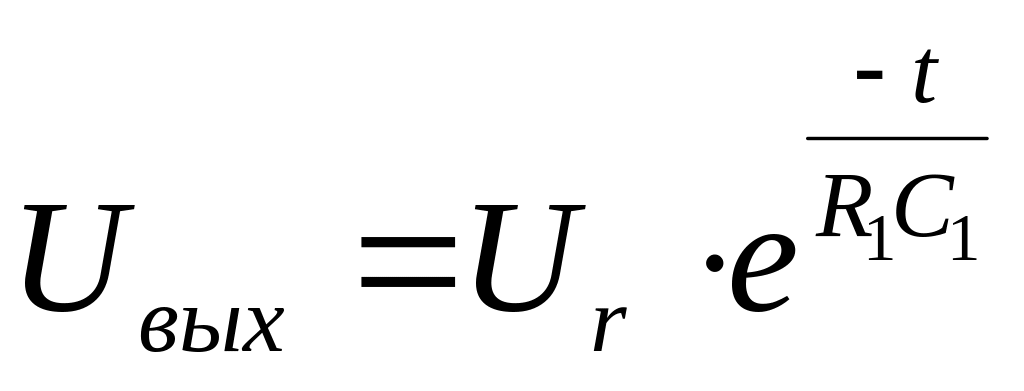 При подаче на вход импульса Ur выходной сигнал меняется по экспоненциальной зависимости с постоянной времени R1C1.