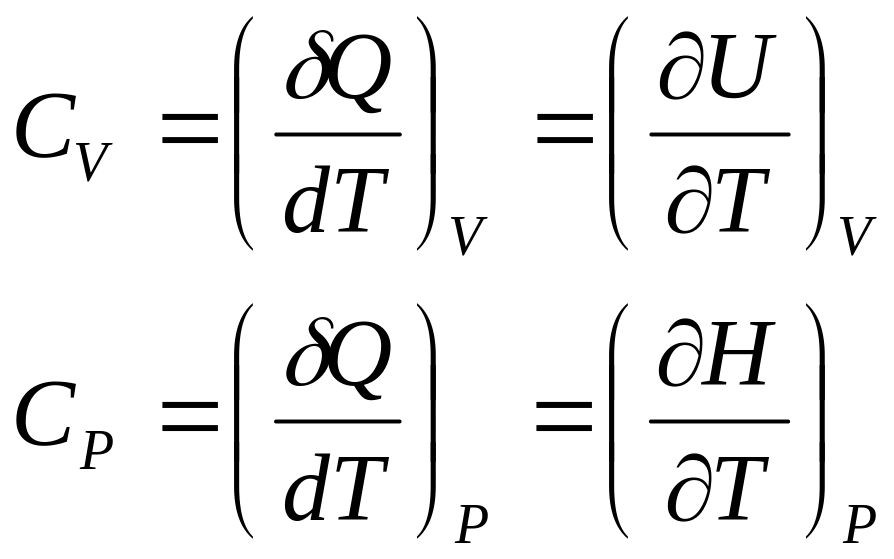 В зависимости от условий нагревания или охлаждения вещества различают истинную молярную теплоемкость при постоянном объеме СV и истинную молярную теплоемкость при постоянном давлении СР: