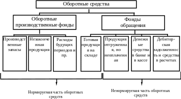 Оборотные средства подразделяются на нормируемые (вложенные в те виды товарно-материальных ценностей, которые постоянно необходимы предприятию и предусматриваются в его финансовом плане в минимальных размерах) и ненормируемые (средства в товарах отгруженных, денежных средствах на счетах и в кассе, дебиторская задолженность).