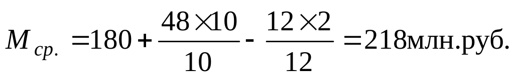Пмср = Пмвх + ПМввК1/12 – ПМвыв(12-К2)/12 ,