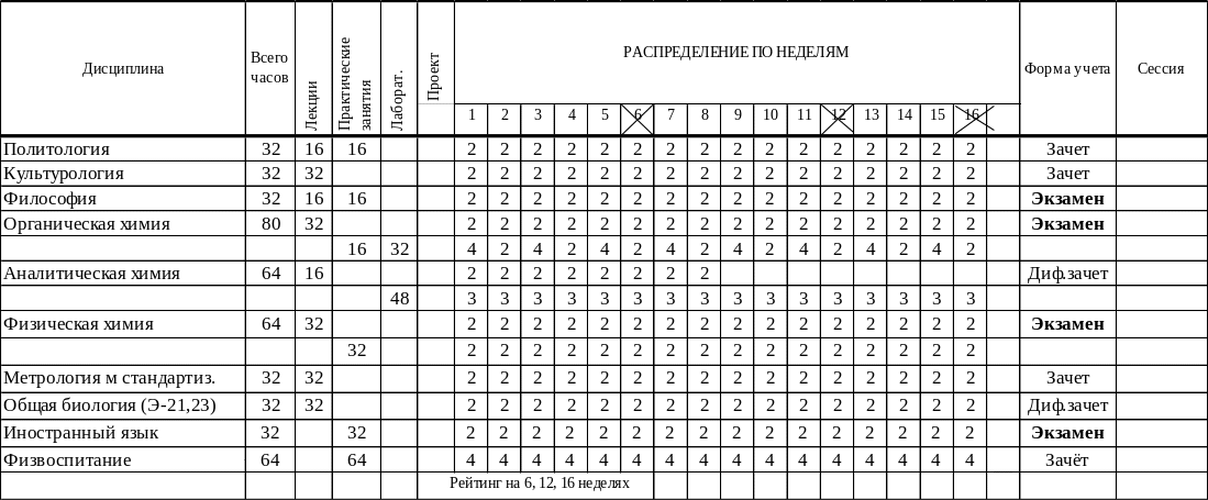 II курса весеннего семестра ТОХФ, ХТП, ИХТ факультетов