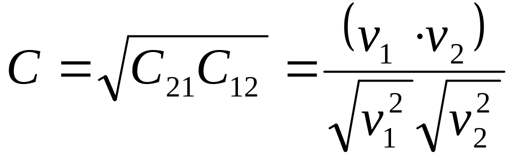 Очевидно, що величина С дорівнює косинусу кута між векторами і її модуль може знаходитися в межах від 0 до 1.