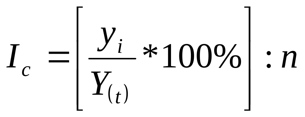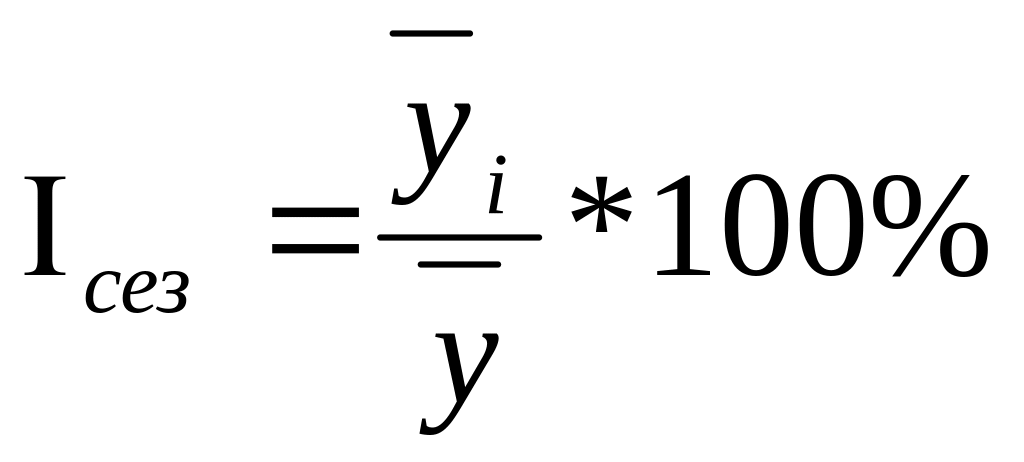 Для динамічних рядів, які виявляють тенденцію, індекси сезонності визначають за методом змінної середньої (виключення тренду). Індекси сезонності знаходимо за формулою: