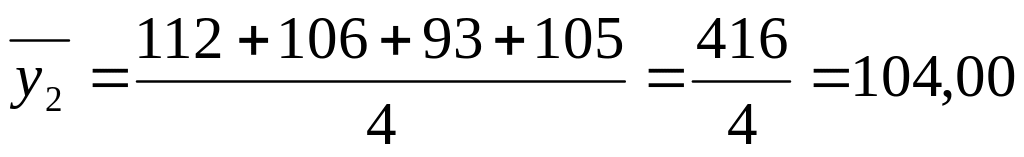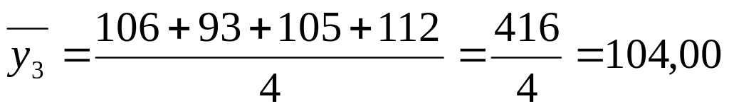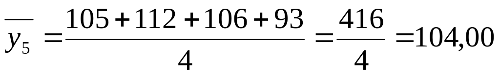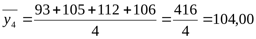 У(t)4 = 104,92 + 0,89*0 – 1,33*1 = 103,59