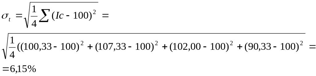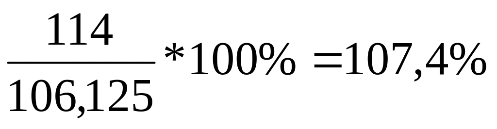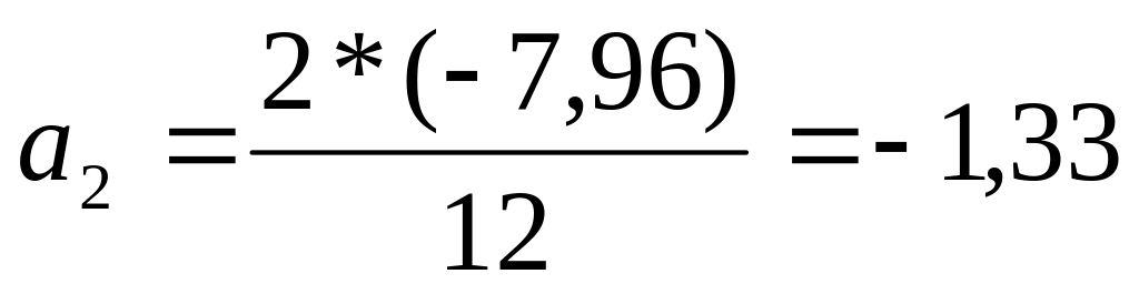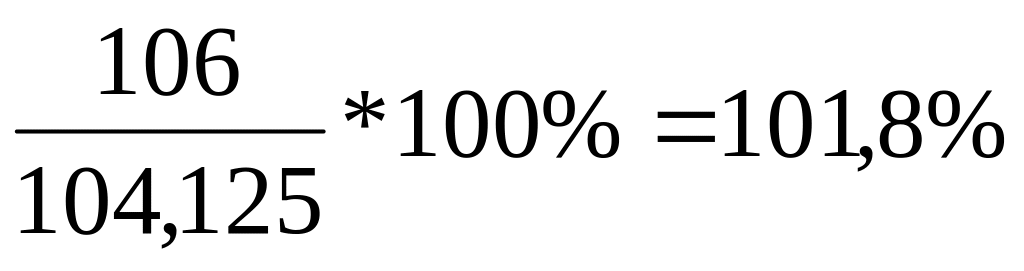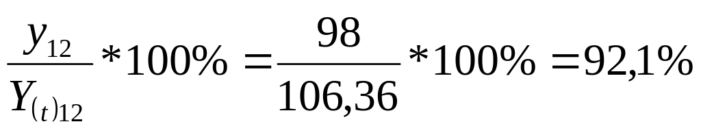 У(t)12 = 104,92 + 0,89*0,866 – 1,33*(-0,5) = 106,36