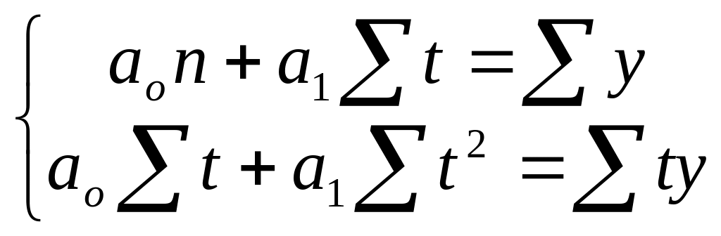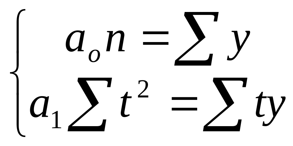 Відлік часу t перенесемо в середину ряду, тоді Σt = 0 і розв’язок системи значно спрощується: