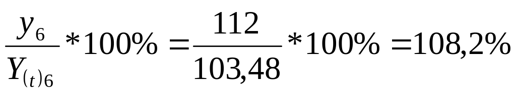 У(t)6 = 104,92 + 0,89*(-0,866) – 1,33*0,5 = 103,48
