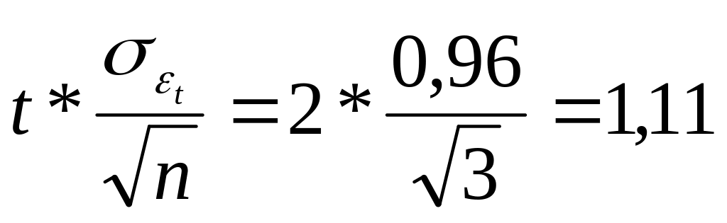 t – число, яке гарантує з певною ймовірністю межі прогнозу (для ймовірності 0,9545 t = 2);