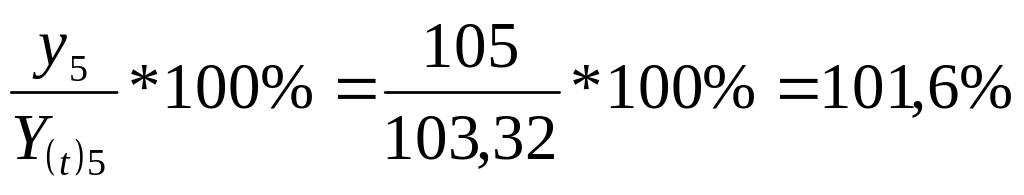 У(t)5 = 104,92 + 0,89*(-0,5) – 1,33*0,866 = 103,32