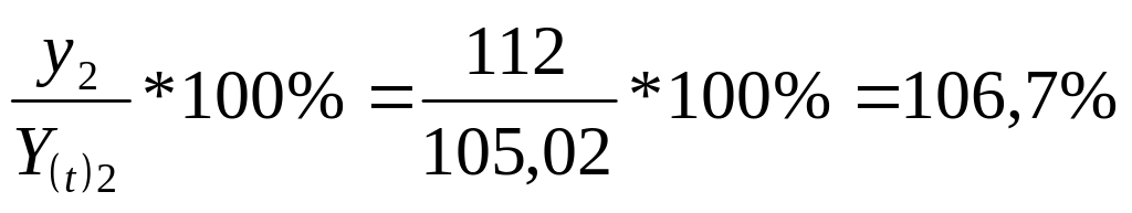 У(t)2 = 104,92 + 0,89*0,866 – 1,33*0,5 = 105,02