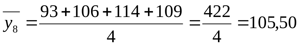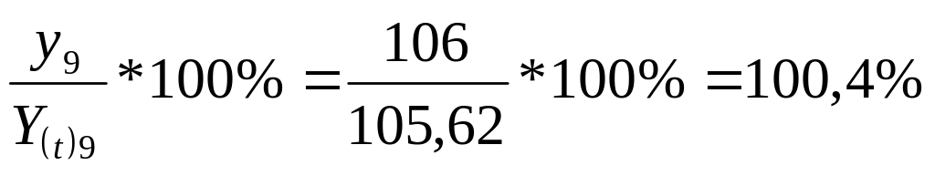 У(t)9 = 104,92 + 0,89*(-0,5) – 1,33*(-0,866) = 105,62