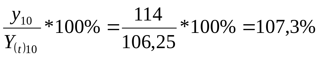 У(t)10 = 104,92 + 0,89*0 – 1,33*(-1) = 106,25