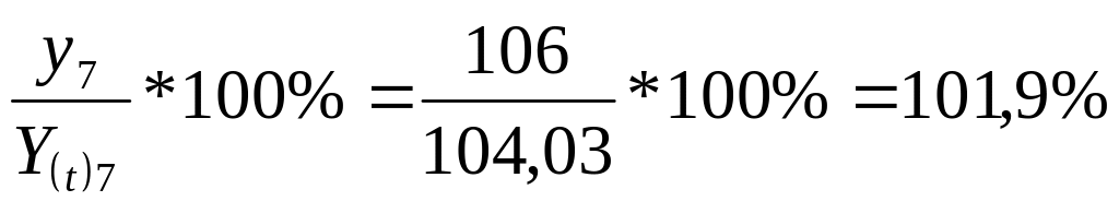 У(t)7 = 104,92 + 0,89*(-1) – 1,33*0 = 104,03