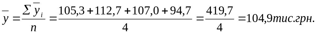 І квартал у1 = 1,0033*[104,9167 – 0,0437 (13)] = 104,69 тис. т.