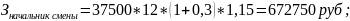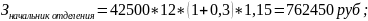Годовой фонд заработной платы ИТР рассчитывается исходя из размера должностного оклада, уровня премии и районного коэффициента: