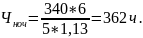 Количество ночных часов (Чноч), которые рабочий отрабатывает по плану: