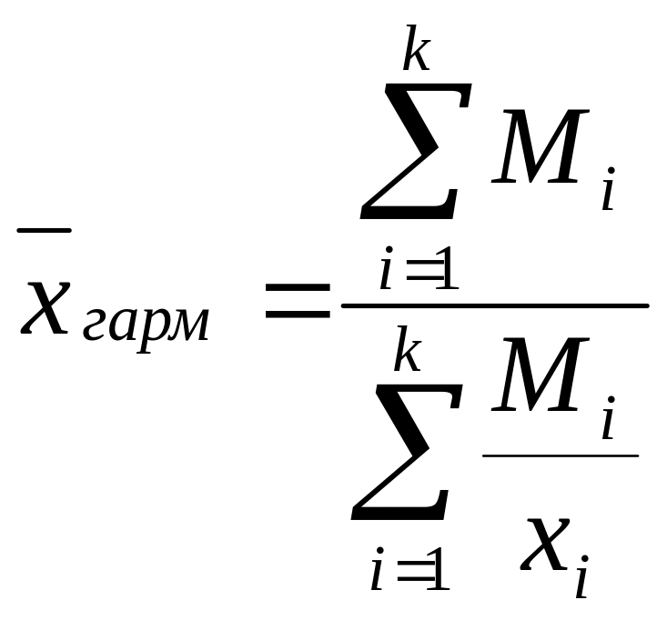 Средняя гармоническая применяется, когда индивидуальные значения выражены в форме обратных показателей. Если вес каждого варианта равен единице, то при n вариантах формула: