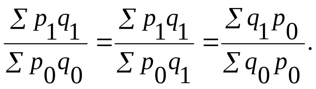 На изменение среднего значения показателя оказывают влияние изменение значений осредняемого признака и изменение весов. Если в числителе и знаменателе сводного индекса веса берутся на уровне одного и того же периода, то он называется индексом фиксированного состава. Индекс цен фиксированного состава определяется по формуле