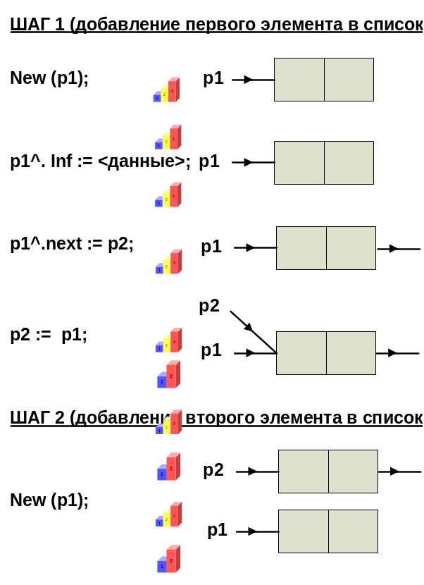 p1^.next := p2; { "связываем" элементы списка }