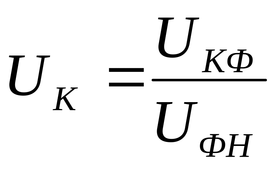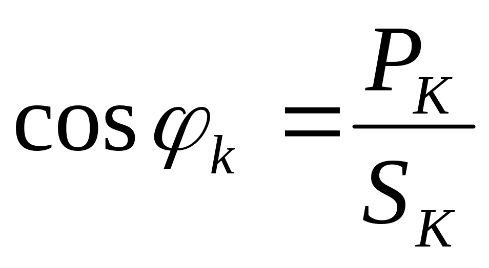 де I1Kнф , РКН , соsкн , ІКрн - параметри короткого замикання, які відповідають номінальній напрузі U1нф ; Uок - значення напруги, яке відрізняється на осі абсцис характеристикою IK =(UK) при продовжені прямолінейної частини цієї характеристики.